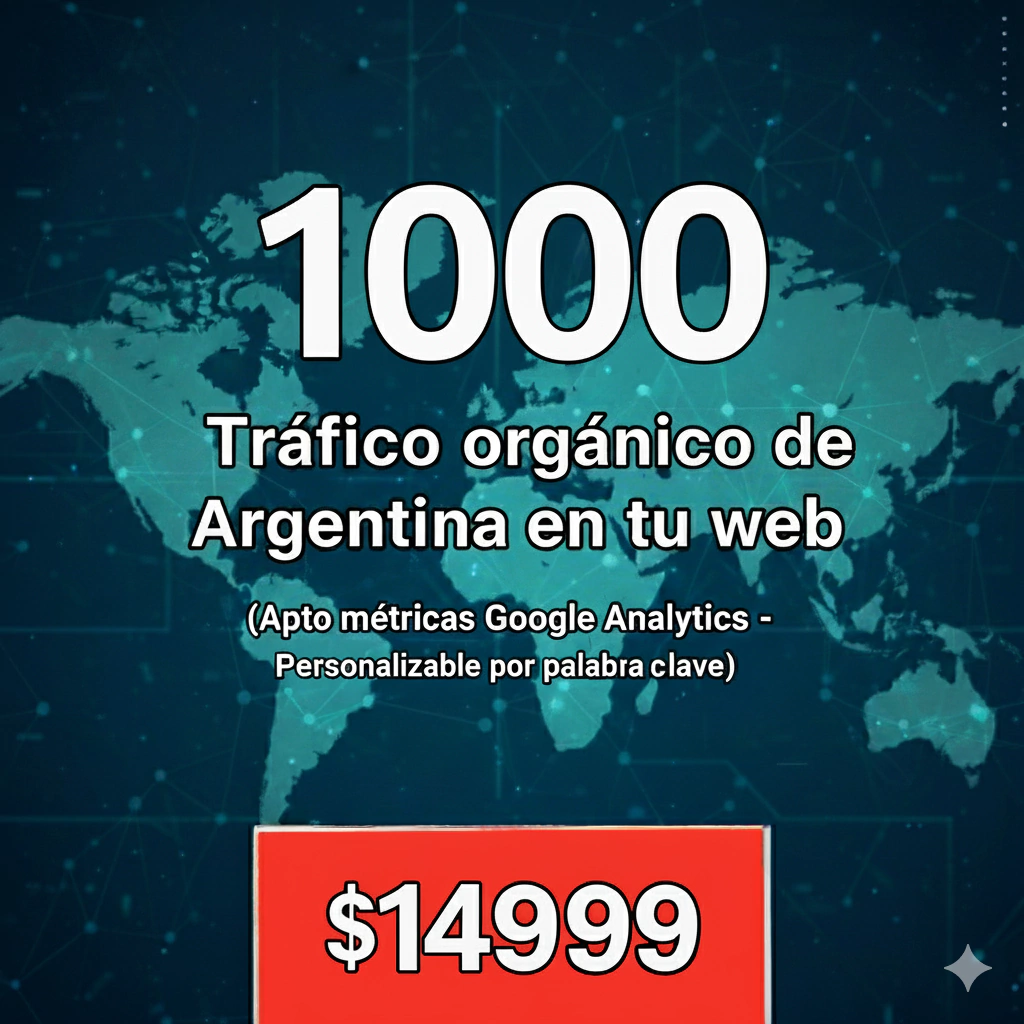 Tráfico geolocalizado dentro de Argentina, ideal para proyectos locales, tiendas, emprendimientos o marcas personales con público argentino.