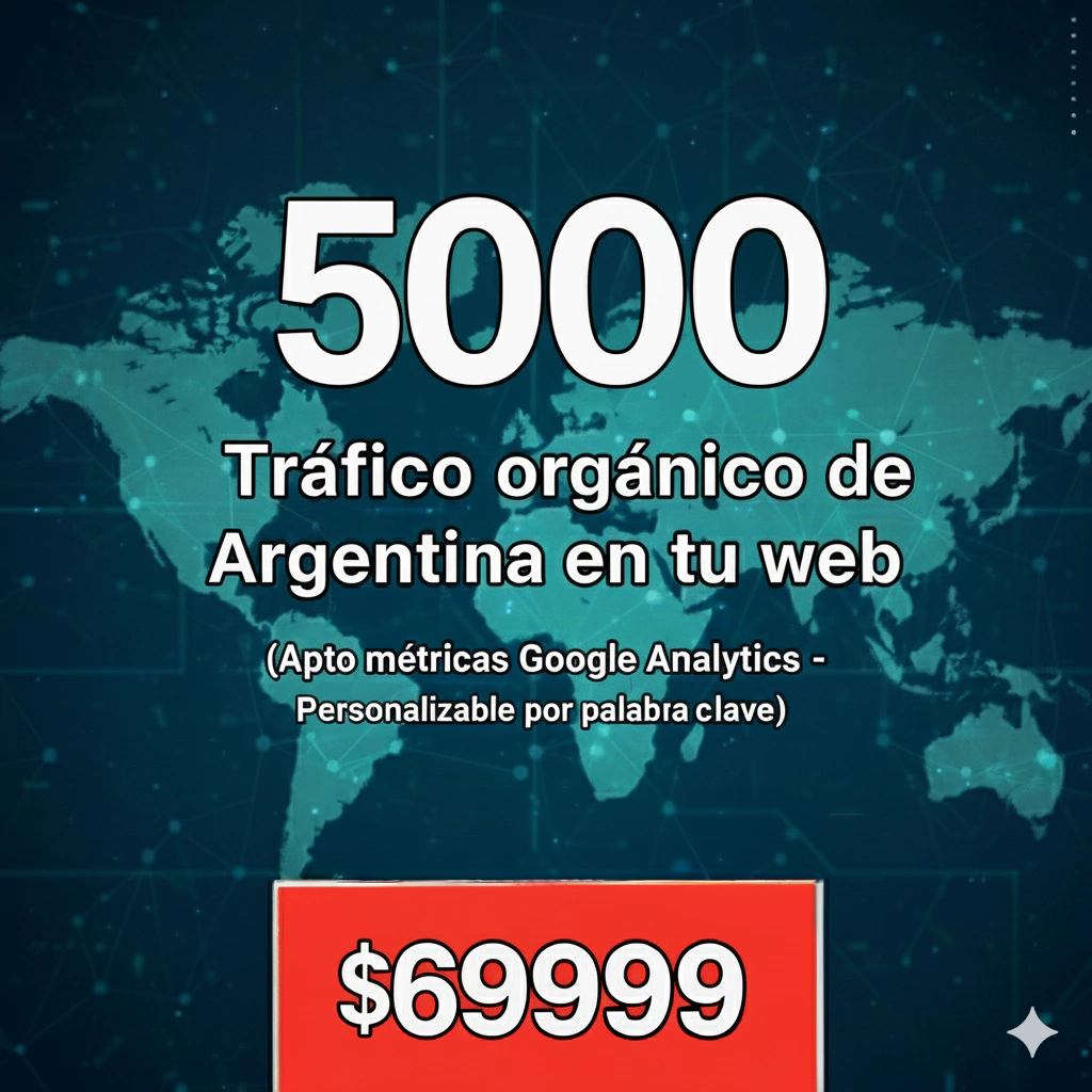 Tráfico geolocalizado dentro de Argentina, ideal para proyectos locales, tiendas, emprendimientos o marcas personales con público argentino.